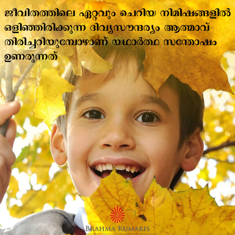 ജീവിക്കുവാനുള്ള ശാസ്ത്രം അഥവാ കല നമുക്ക് കൈമോശം വന്നിരിക്കുന്നതിനാലാണ് ഭൗതികമായി എല്ലാം നിറഞ്ഞു കവിഞ്ഞിട്ടും മാനസികമായി ഭൂരിഭാഗം പേരും തളർന്നിരിക്കുന്നത്. ശാന്തി നഷ്ടമായിരിക്കുന്നത് ഉള്ളിലാണ്. ഏതാനും സമയം തന്റെ വാസ്തവീകമായ ആത്മസ്വരൂപത്തെ നിരീക്ഷിച്ചുകൊണ്ടും വിശ്വപിതാവായ പരമാത്മ തേജസ്സിലേക്ക് ദൃഷ്ടിയുറപ്പിച്ചുകൊണ്ടും, രാജയോഗ ധ്യാനത്തിലുടെ ശാശ്വതവും അളവറ്റതുമായ ശാന്തിയും മറ്റെല്ലാ ഗുണങ്ങളും അനുഭവിക്കുവാൻ ഏതൊരു സാധാരണ മനുഷ്യനും സാധിക്കുന്നതാണ്.