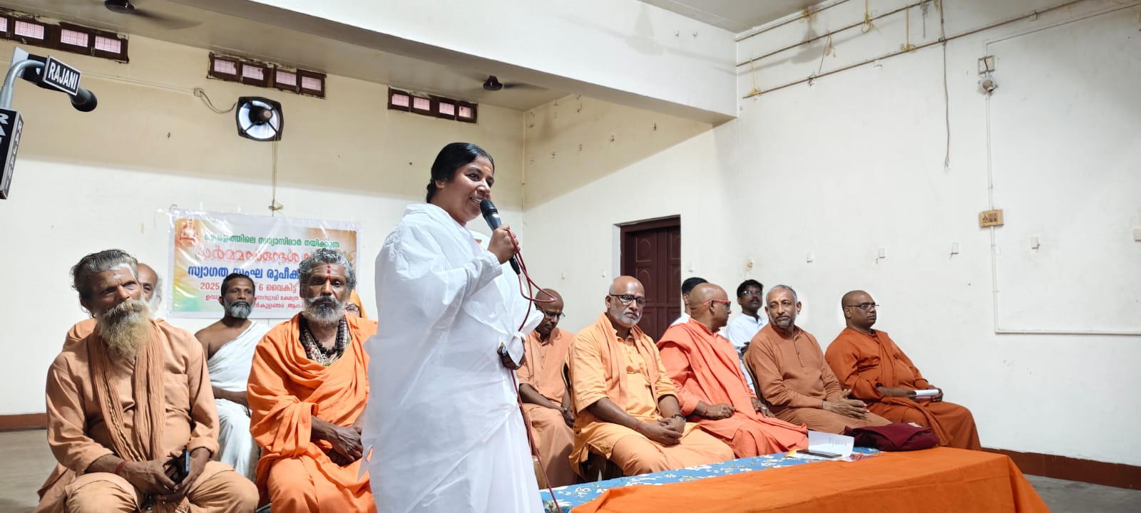 ആലപ്പുഴ ഉഡുപ്പി ക്ഷേത്ര ഓഡിറ്റോറിയത്തിൽ നടന്ന ധർമസന്ദേശ യാത്ര സ്വാഗതസംഘ രൂപീകരണ യോഗത്തിൽ ദിഷ സിസ്റ്റർ സംസാരിക്കുന്നു