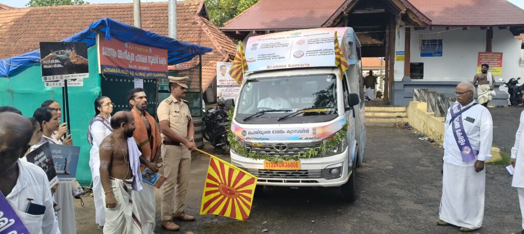 ഭാരത സർക്കാരിൻ്റെ നശാ മുക്ത് ഭാരത് അഭിയാൻ എന്ന ദേശീയ ലഹരി വിമുക്തി പ്രചാ രണ പരിപാടിയുടെ ഭാഗമായി, ബ്രഹ്മാകുമാരിസുമായി സംയുക്തമായി നടത്തിവരുന്ന സന്ദേശ വാഹന പ്രചരണയാത്ര വൈക്കത്ത് നടത്തി. വൈ ക്കം എക്സൈസ് സിഐ സ്വരൂപ് ഫ്ലാഗ് ഓഫ് ചെയ്തു ഉദ്ഘാടനം നടത്തി. വൈക്കം മഹാദേവക്ഷേത്രം മേൽശാന്തി വാഹനത്തിന് പൂമാല അണിയിച്ചു. വൈക്കം ബ്രഹ്മാകുമാരീസിൻ്റെ ചുമതല നിർവ്വഹിക്കുന്ന ബ്രഹ്മാകുമാരി ഗീത ബഹൻ പ്രതിജ്ഞ ചൊല്ലി. വാഹന ക്യാമ്പയിൻ ക്യാപ്റ്റൻ ബ്രഹ്മാകുമാർ സഞ്ചീവ് ഭായി യാത്രയുടെ ലക്ഷ്യങ്ങൾ പങ്കുവച്ചു. ലഹരി വിമുക്ത പ്രതിജ്ഞ ബ്രഹ്മകുമാർ രഞ്ജിത്ത് ഭായ് ചൊല്ലിക്കൊടുത്തു