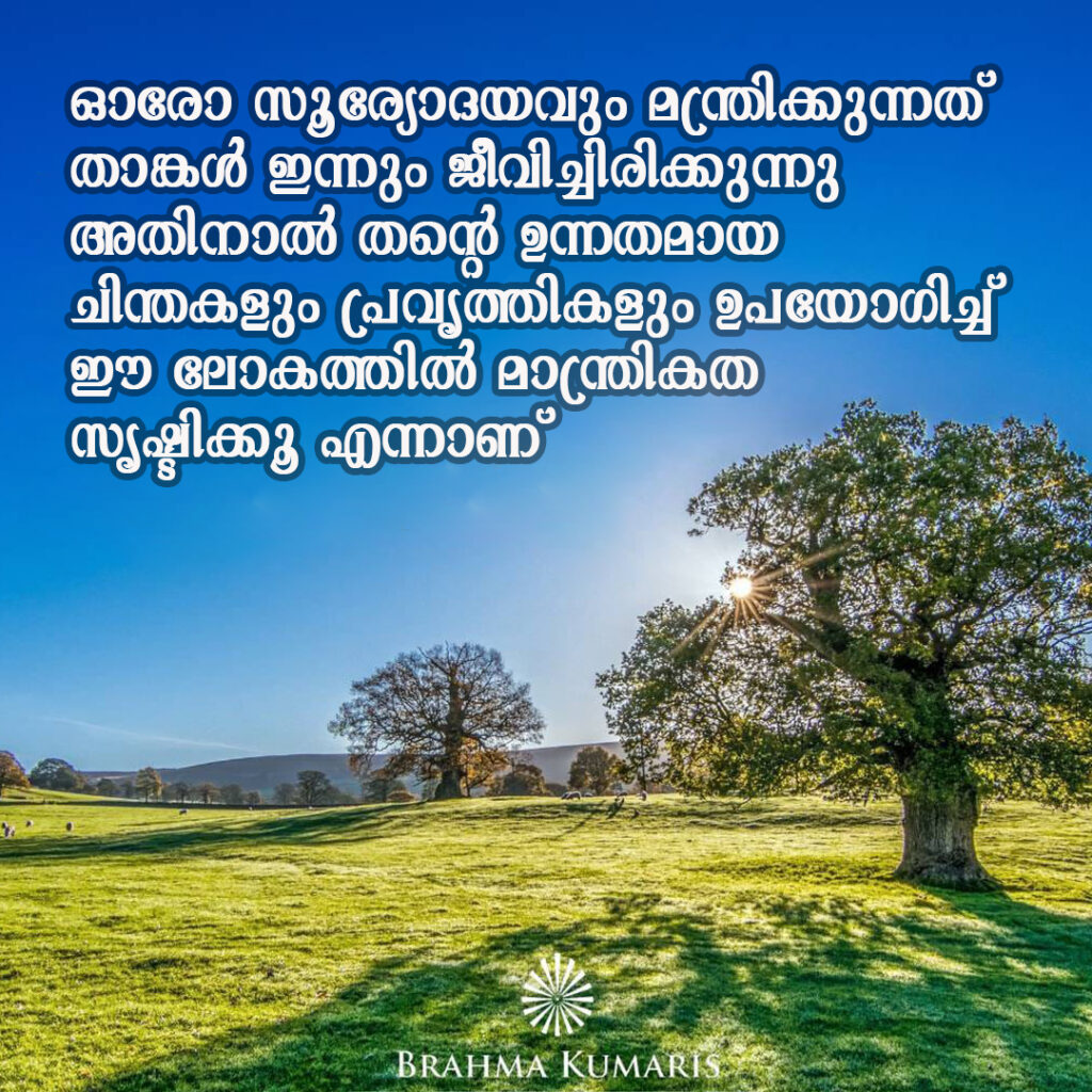 സൂര്യോദയത്തോടൊപ്പം പുതിയ സാധ്യതകളും ഉയരുകയാണ്. ഓരോ പ്രഭാതവും നമ്മെ ആത്മീയമായി ഉണർത്താനും ശാക്തീകരിക്കാനുമുള്ള ഒരു ക്ഷണമാണ്. അത് പ്രത്യാശയുടെയും നവീകരണത്തിൻ്റെയും പരിവർത്തനത്തിൻ്റെയും ആഴമേറിയ സന്ദേശം വഹിക്കുന്നു. നമ്മുടെ ചിന്തകൾ, വാക്കുകൾ, പ്രവൃത്തികൾ എന്നിവയിലൂടെ അതുല്യവും പരിവർത്തനാത്മകവും പ്രയോജനകരവുമായ മാറ്റം കൊണ്ടുവരാനാകും