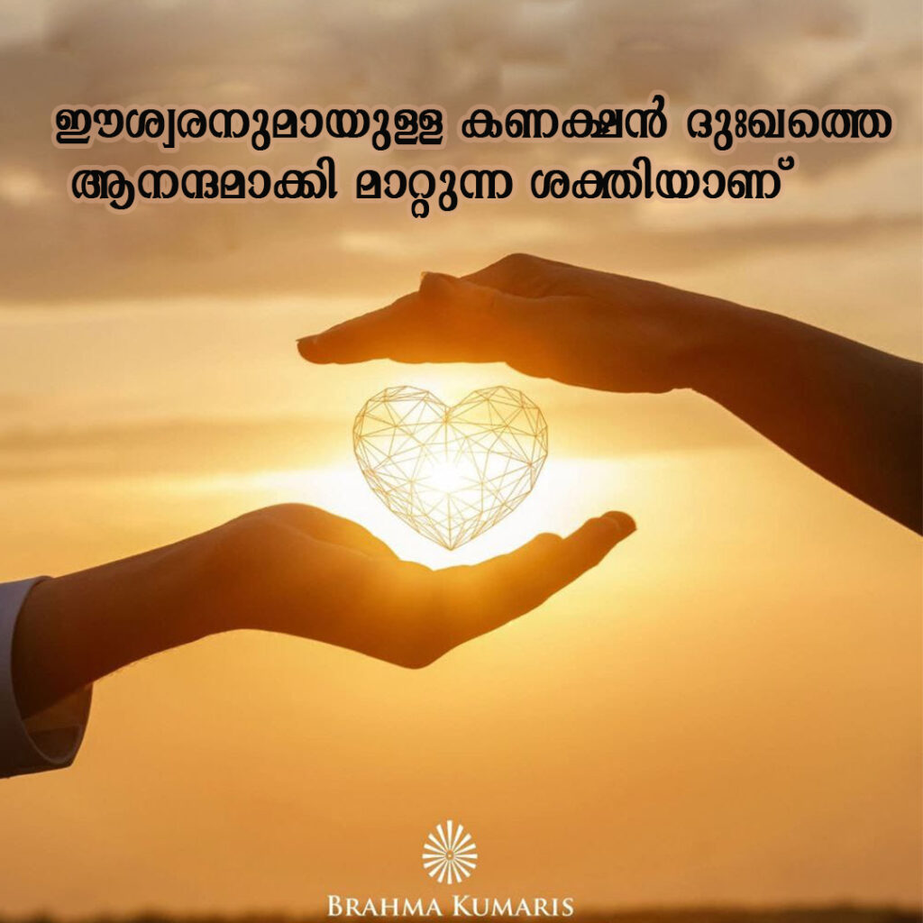 ഹൃദയം അതിൻ്റെ ഏറ്റവും വലിയ ശക്തി കണ്ടെത്തുന്നത് പരമാത്മാവിലാണ്. ഈശ്വരനുമായി കണക്ട് ആയിരിക്കുമ്പോൾ , ദുഃഖഭാരം കുറയുകയും സമാധാനത്തിൻ്റെയും ആനന്ദത്തിൻ്റെയും അനുഭവമായി മാറുകയും ചെയ്യുന്നു. ഈ ദിവ്യ സംബന്ധമാണ് നമ്മെ ഉയർത്തുകയും സുഖപ്പെടുത്തുകയും ചെയ്യുന്ന യഥാർത്ഥ ശക്തി.